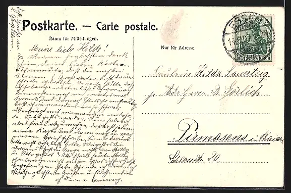 alte Ansichtskarte, gelaufen 1907, Eckknick re. unten, minimaler Einriss li. oben, guter Zustand
