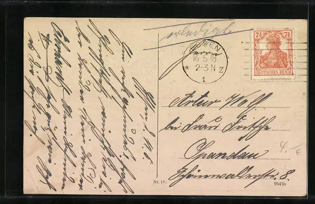 alte Ansichtskarte, gelaufen 1918, Eckknick rechts unten, guter Zustand