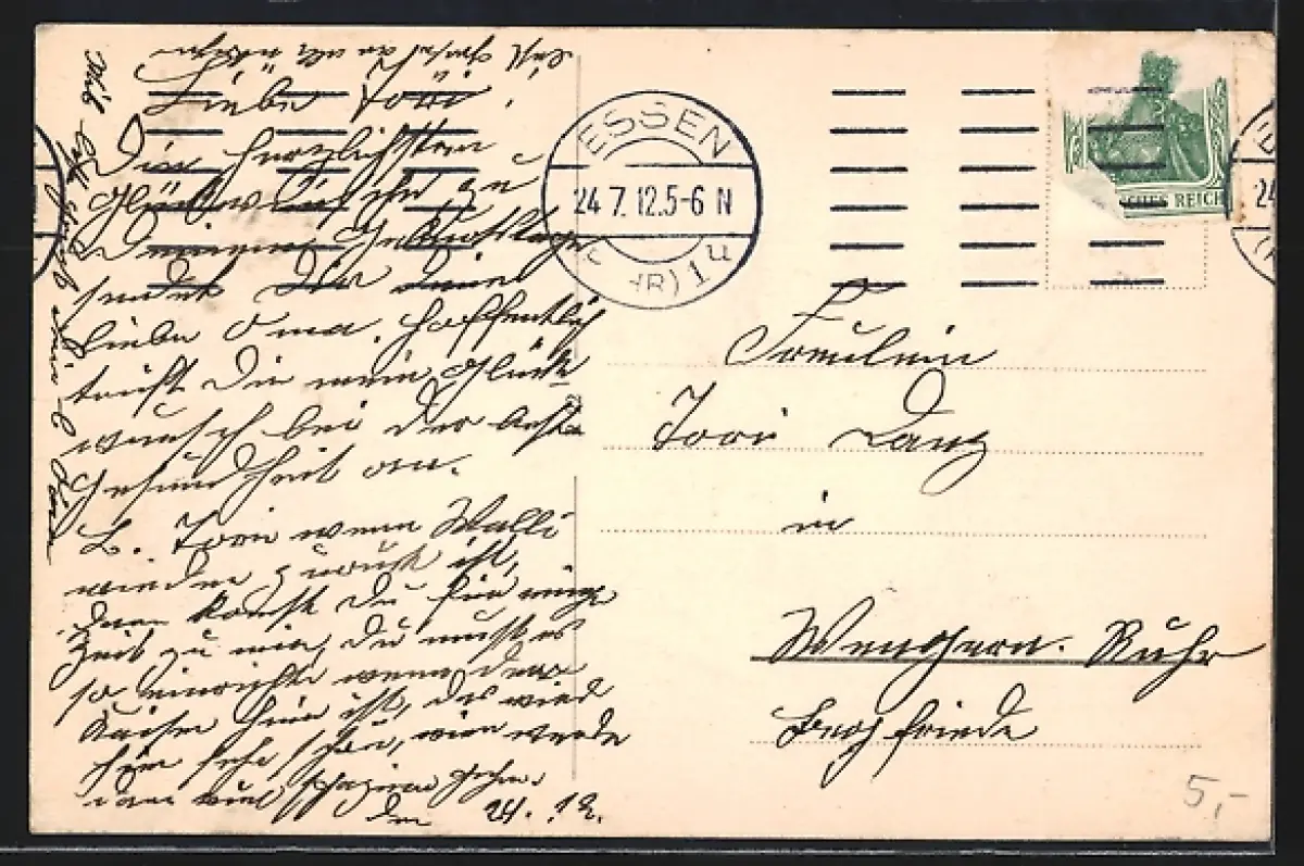 gelaufen 1912, Briefmarke entfernt, guter Zustand