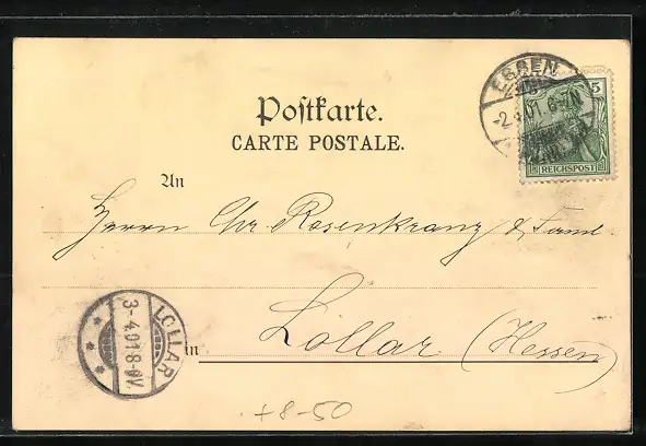 alte Ansichtskarte, gelaufen 1901, guter Zustand