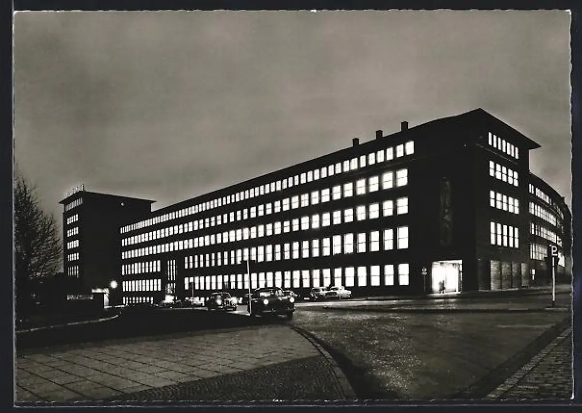 AK Essen / Ruhr, Ruhrkohle-Haus bei Nacht