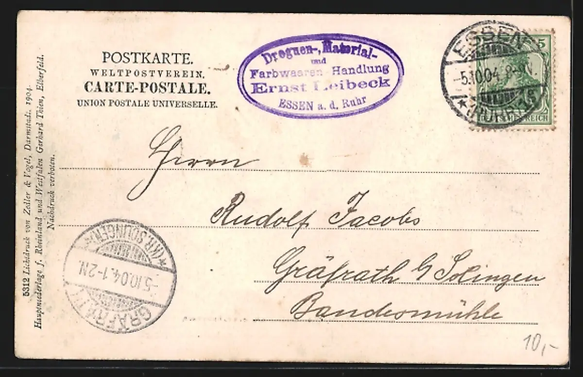 alte Ansichtskarte, gelaufen 1904, Eckknick unten rechts, guter Zustand