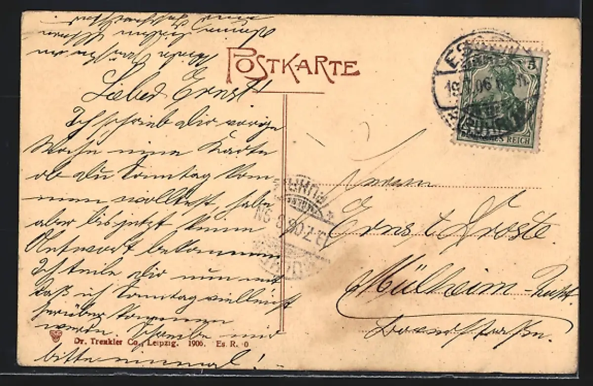 alte Ansichtskarte, gelaufen 1906, Stempelspur, guter Zustand
