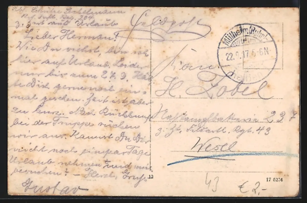 alte Ansichtskarte, gelaufen 1917, Eckknick li. oben, guter Zustand