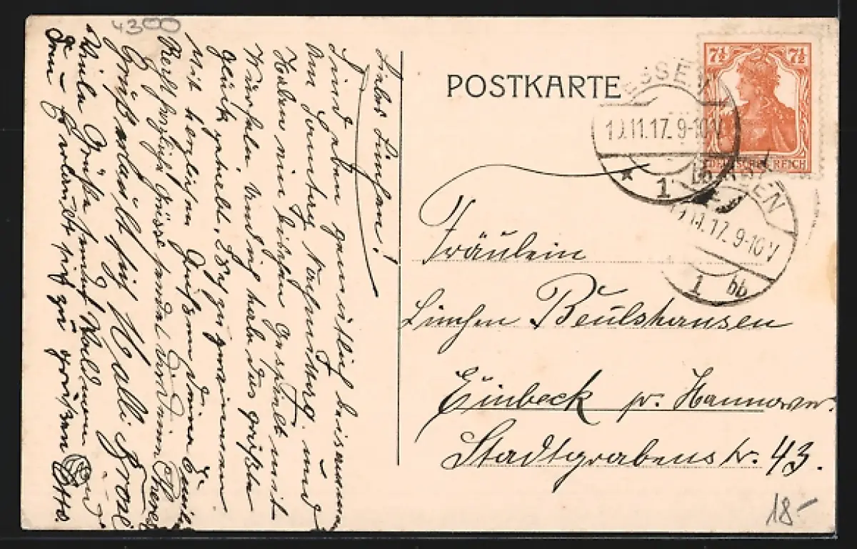 gelaufen 1917, Eckknick oben rechts, guter Zustand
