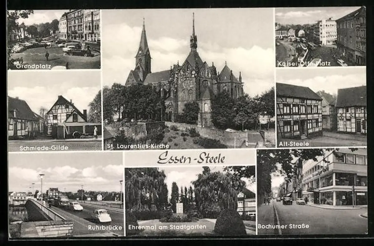 AK Essen-Steele, St. Laurentius-Kirche, Kaiser-Otto-Platz, Ruhrbrücke