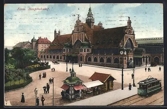 AK Essen, Strassenbahn vor dem Hauptbahnhof