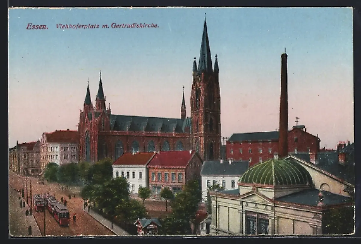 AK Essen, Viehhoferplatz m. Gertrudiskirche