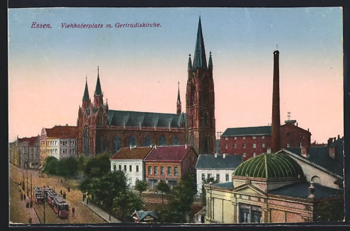 AK Essen, Viehhoferplatz mit Gertrudiskirche