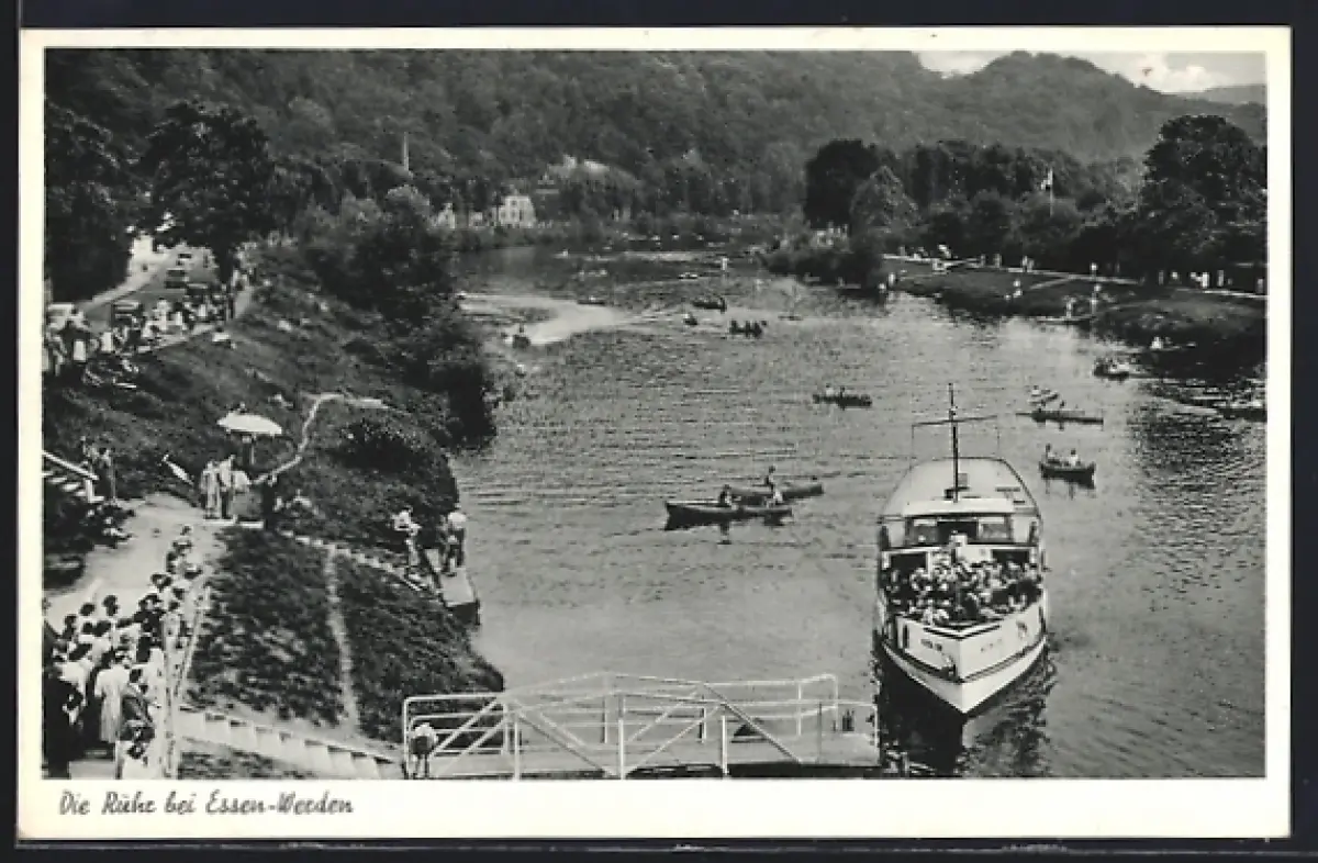 AK Essen-Werden /Ruhr, Schiffen auf dem Fluss
