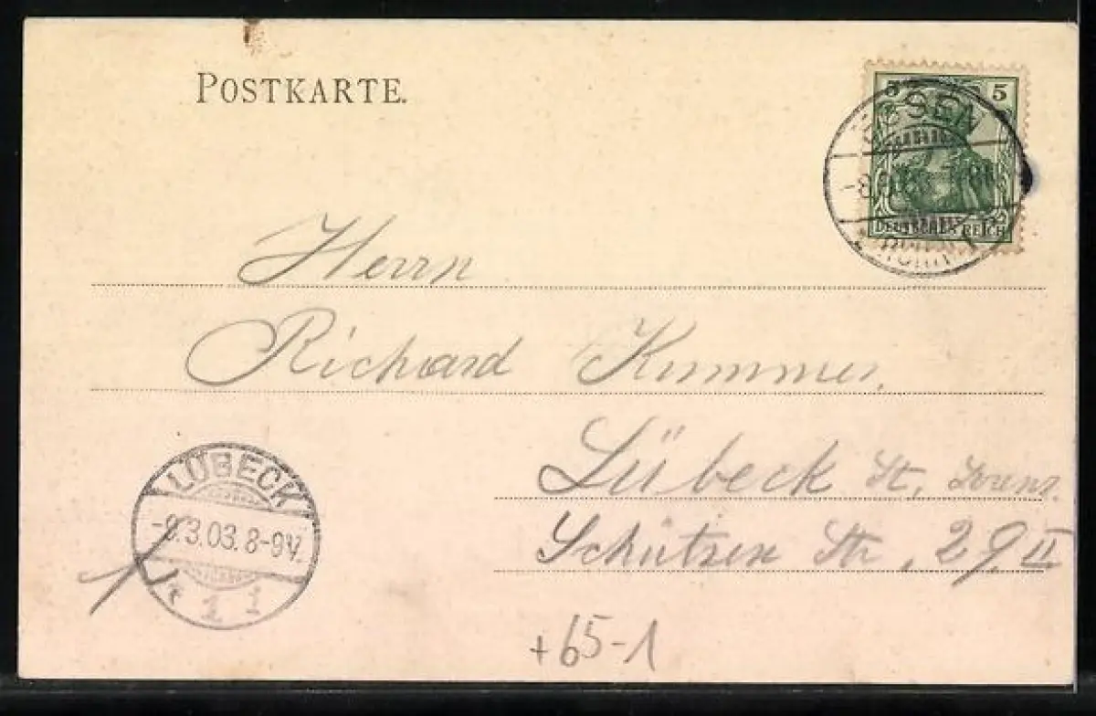 alte Ansichtskarte, gelaufen 1903, Eckknick li. oben, guter Zustand