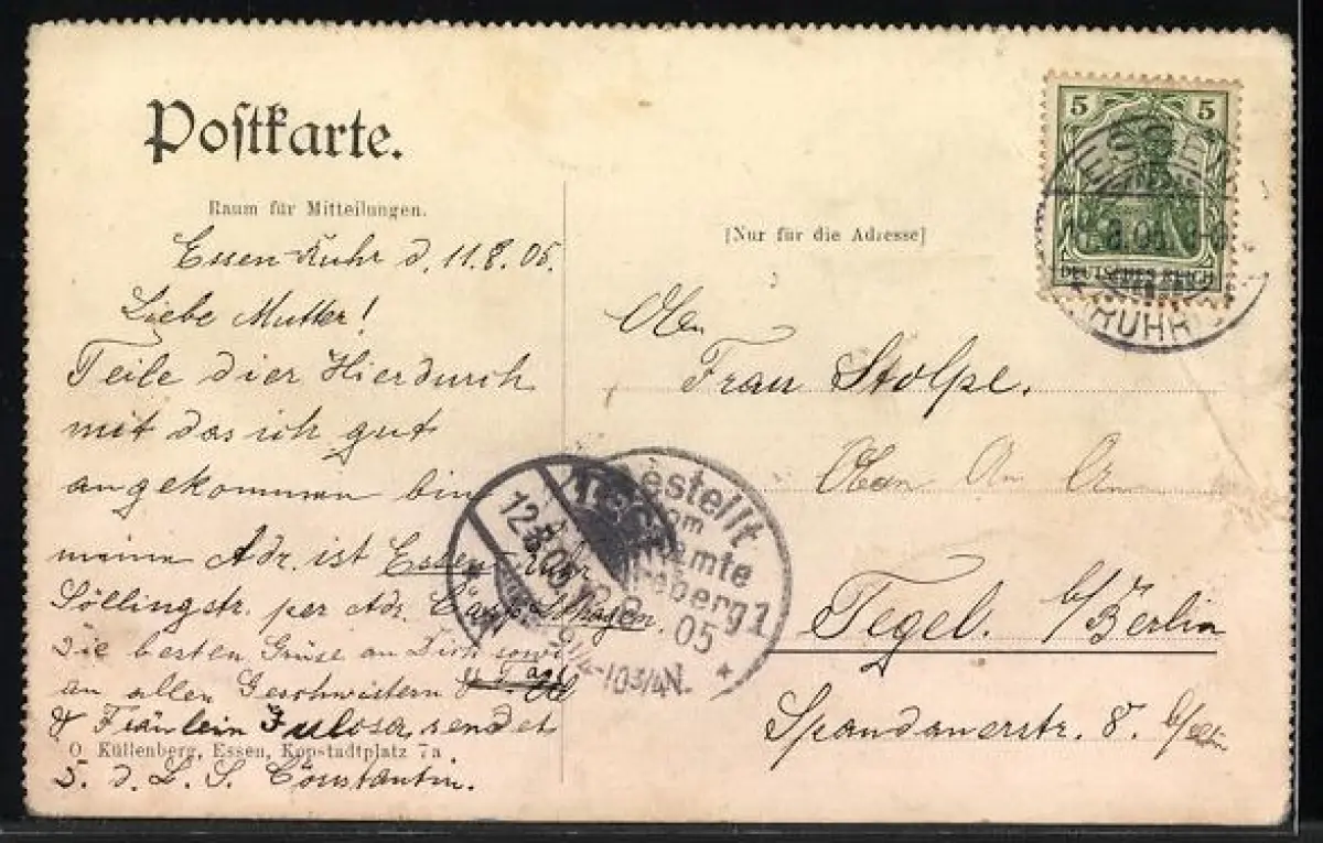 alte Ansichtskarte, gelaufen 1905, guter Zustand
