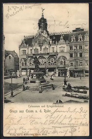 AK Essen a. d. Ruhr, Colosseum und Kriegerdenkmal