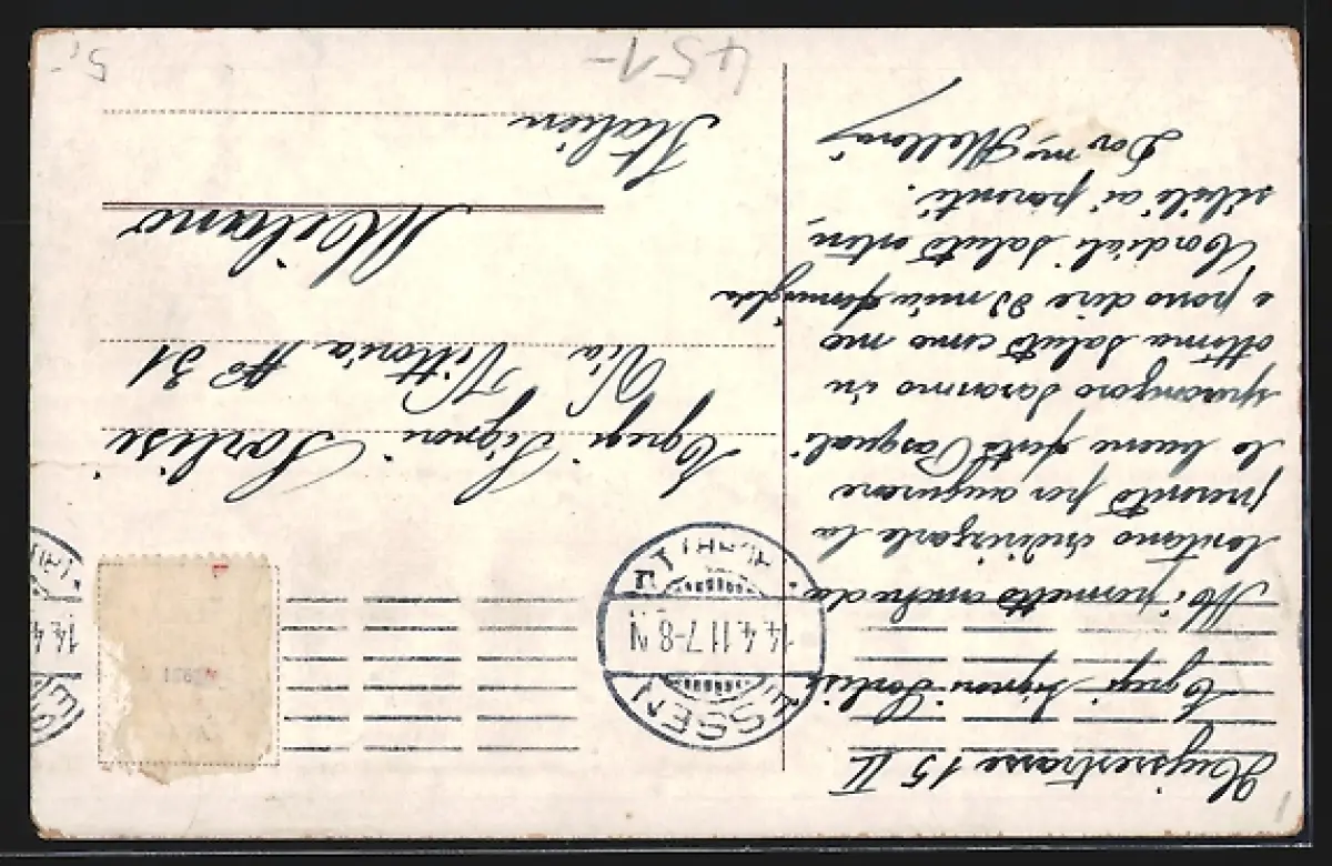 alte Ansichtskarte, gelaufen 1911, Briefmarke entfernt, rückseitig Oberflächenschaden, guter Zustand