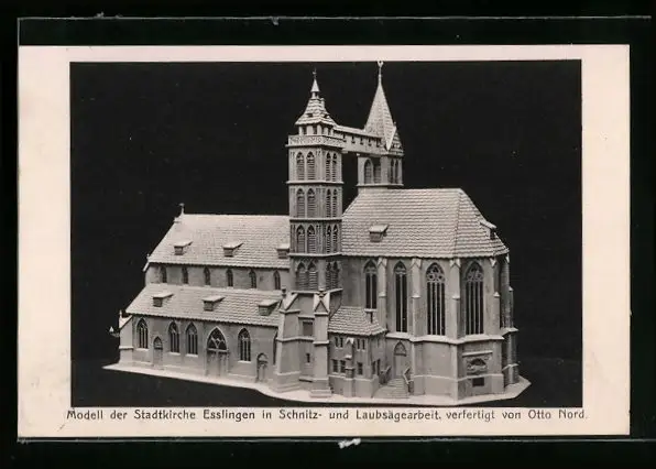 AK Esslingen a. N., Modell der Stadtkirche in Schnitz- und Laubsägearbeit, verfertigt von Otto Nord