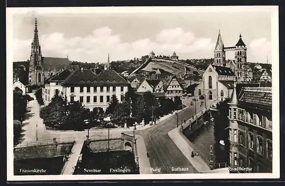 AK Esslingen a. N., Teilansicht mit Frauenkirche, Seminar und Stadtkirche