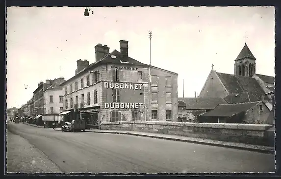 AK Essonnes, Rue de Paris avec publicité Dubonnet et vue sur l`église