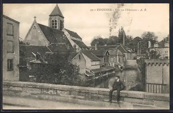 AK Essonnes, Vue sur l`Essonne et l`église depuis le pont