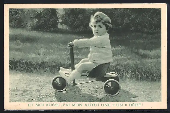 AK Et moi aussi j`ai mon auto!, Kind auf einem Dreirad