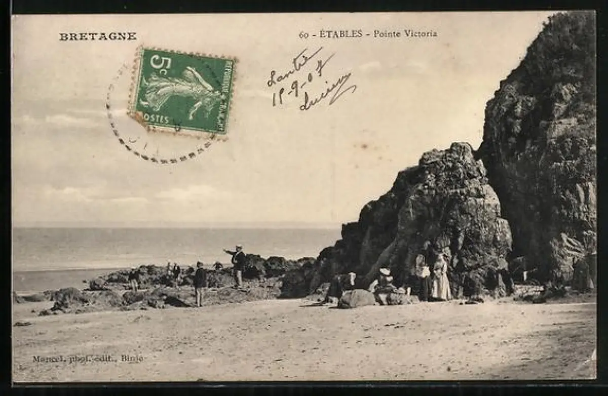 AK Étables, Pointe Victoria et plage avec promeneurs en Bretagne