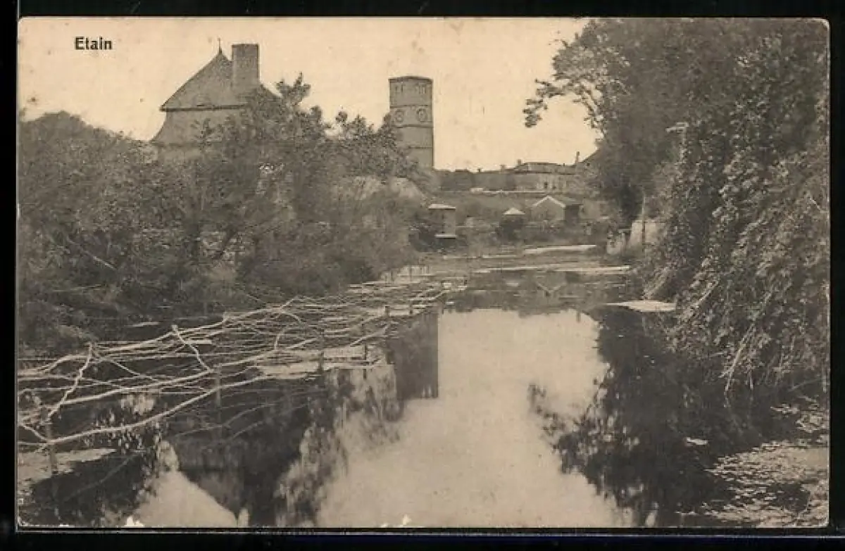 AK Etain, Ortspartie am Flussufer