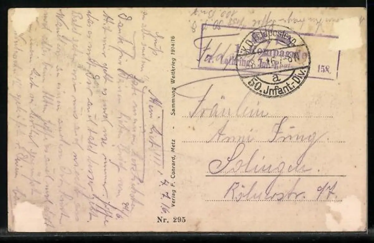 alte Ansichtskarte, gelaufen 1916, rückseitig Oberflächenschaden, Eckknick unten re., guter Zustand