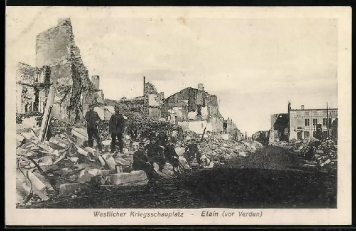 AK Étain /Verdun, Scène de destruction sur le champ de bataille occidental