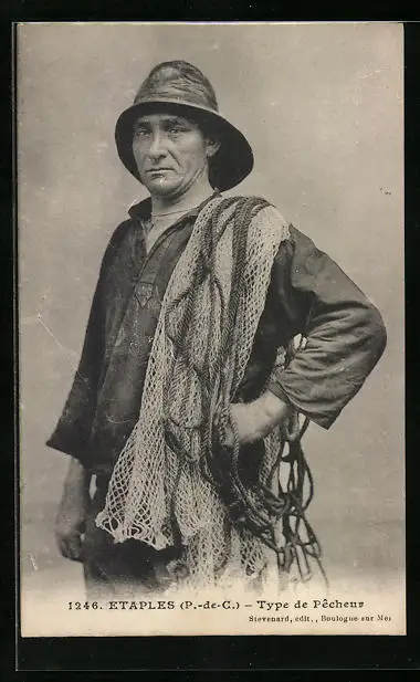 AK Etaples, Type de Pecheur, Fischer mit Netzen