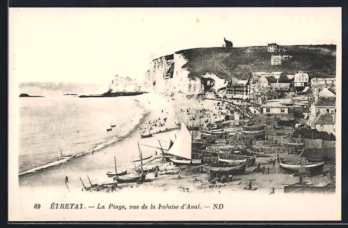 AK Étretat, La Plage, vue de la Falaise d`Aval