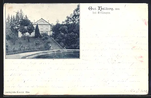 AK Ettlingen, Gut Hellberg, Gebäude und Garten