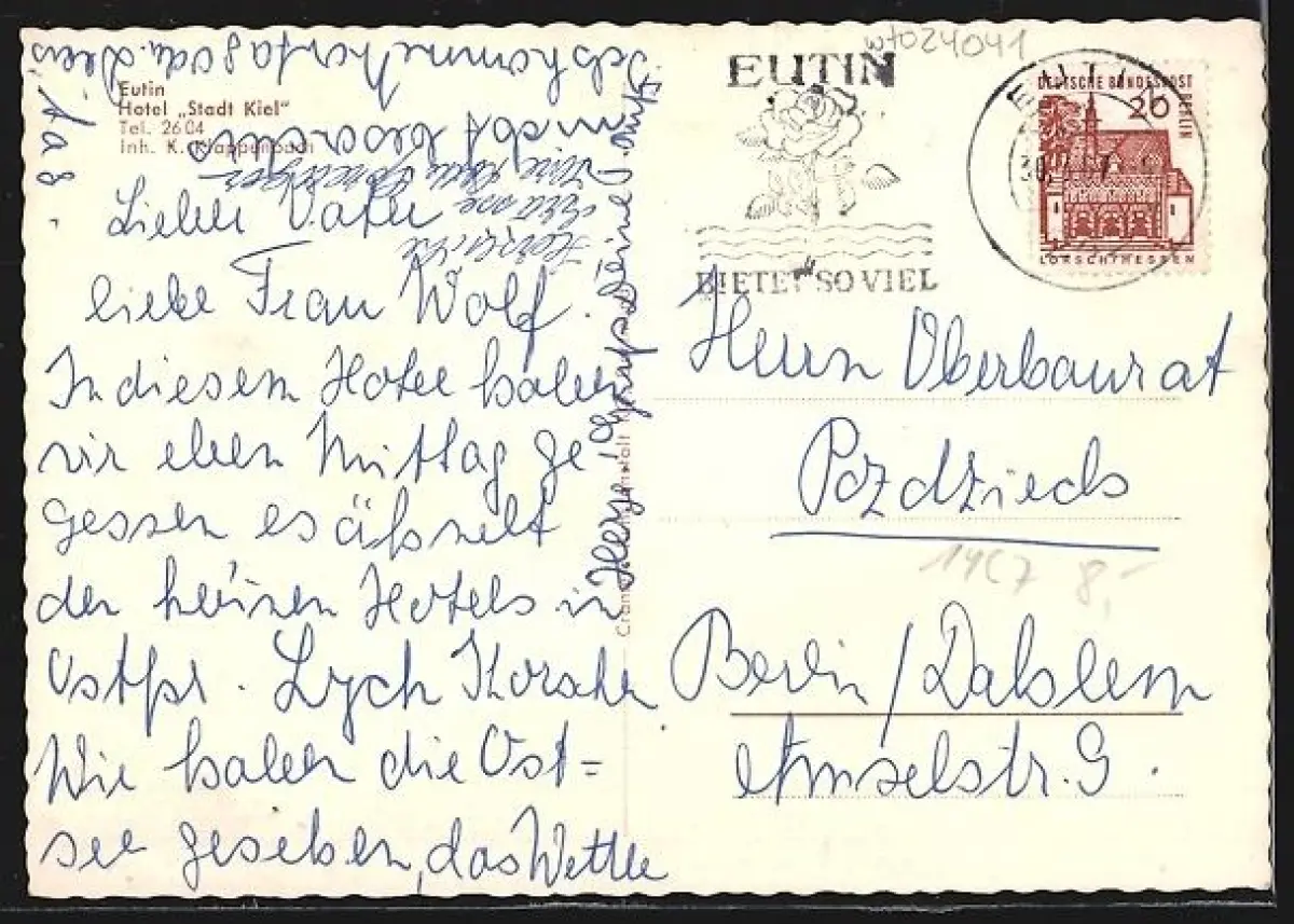 AK Eutin, Hotel Stadt Kiel, Café, Restaurant