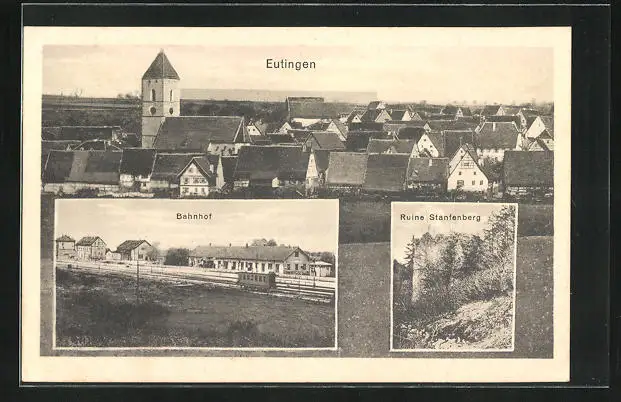 AK Eutingen, Teilansicht, Bahnhof, Ruine Stanfenberg
