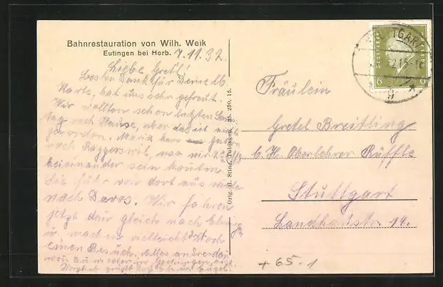 alte Ansichtskarte, gelaufen 1932, guter Zustand