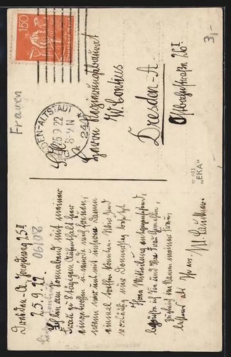 alte Ansichtskarte, gelaufen 1922, Stempelspur, guter Zustand
