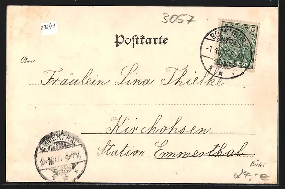 alte Ansichtskarte, gelaufen 1901, rückseitig Klebe- und Papierreste, guter Zustand