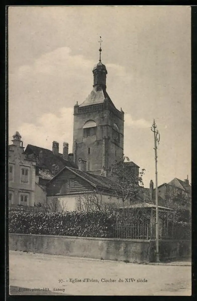 AK Évian, Église d`Évian, Clocher du XIVe siècle