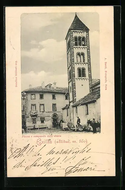 AK Exilles, Albergo della Posta, Piazza e campanile della chiesa