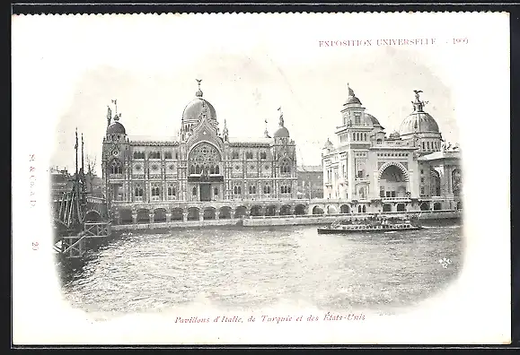 AK Exposition Universelle 1900, Pavillon d`Italie, de Turquie et des Etats-Unis
