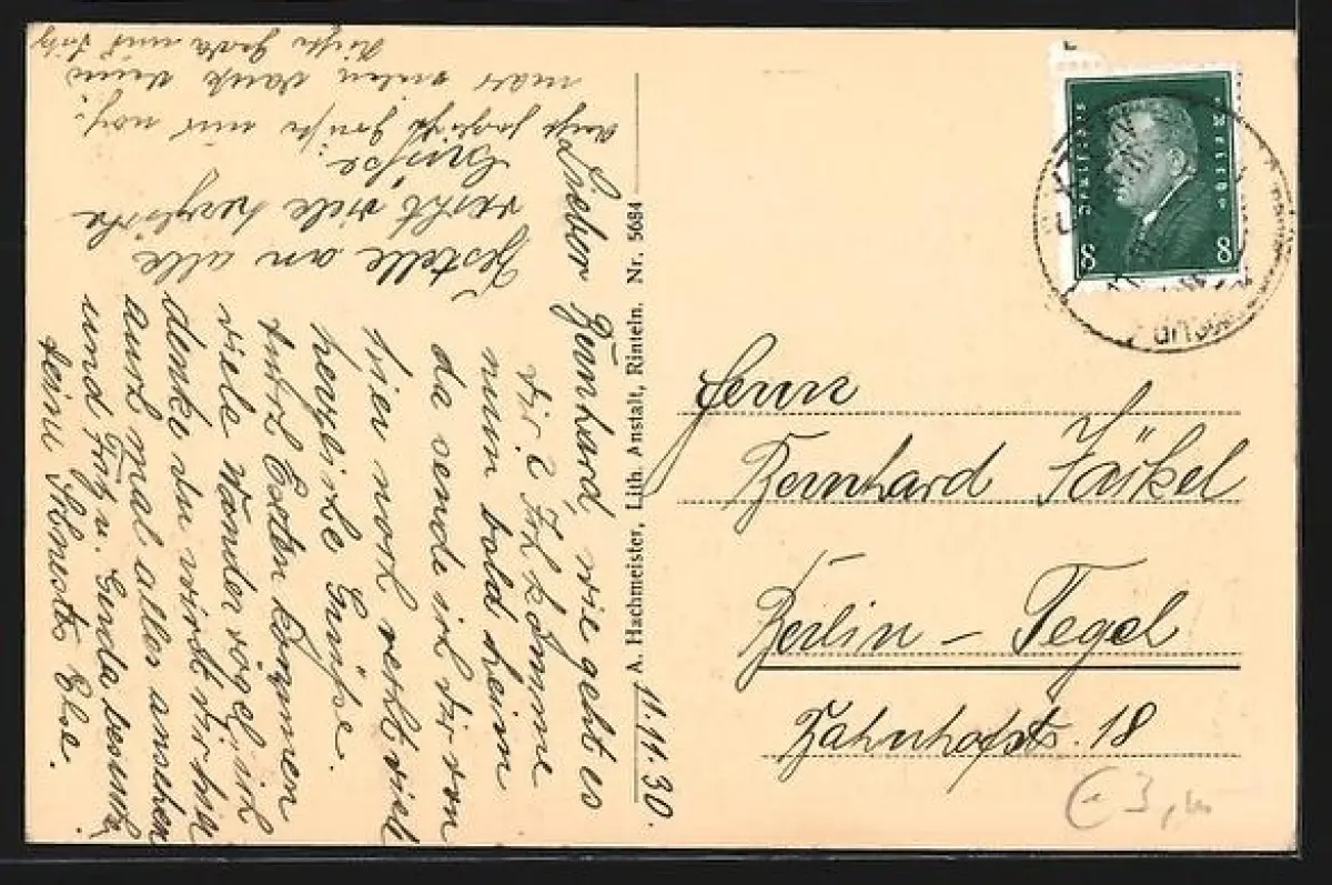 alte Ansichtskarte, gelaufen 1930, guter Zustand