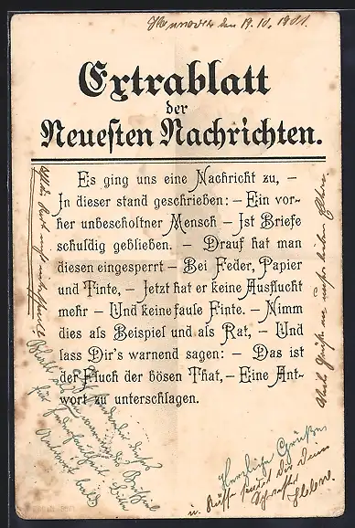 AK Extrablatt der Neuesten Nachrichten..., Schreibfaul