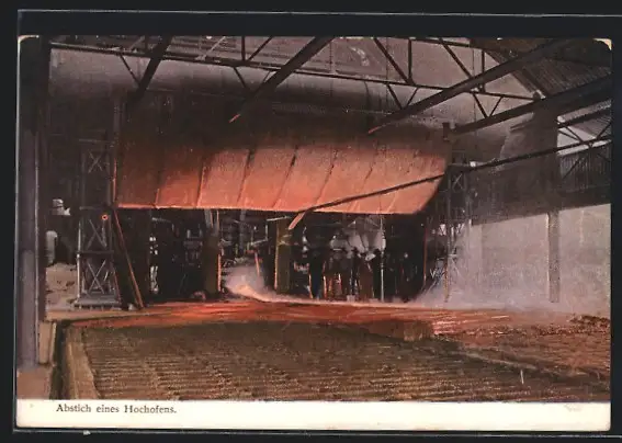 AK Fabrikarbeiter beim Abstich eines Hochofens