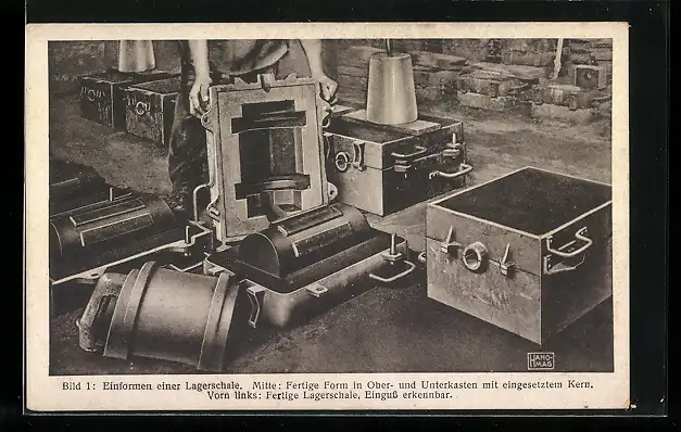 AK Fabrikarbeiter beim Einformen einer Lagerschale, Werdegang eiens Achslagers, Hanomag