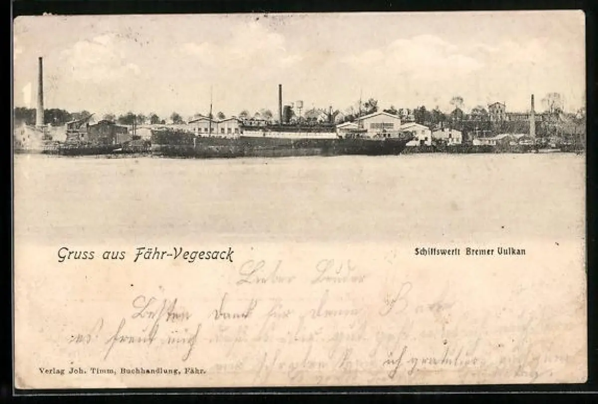 AK Fähr-Vegesack, Schiffswerft Bremer Vulkan, Fracht- und Passagierschiff am Kai liegend