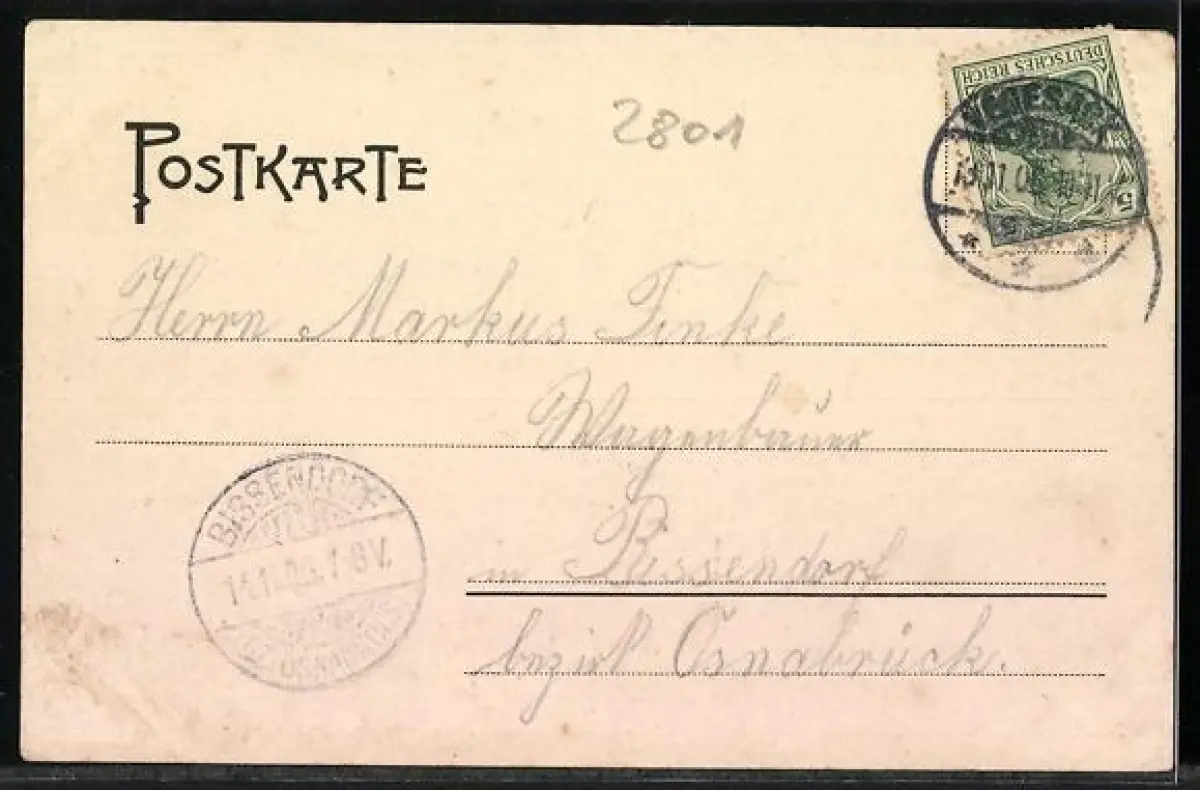 alte Ansichtskarte, gelaufen 1905, Eckknick rechts unten, guter Zustand