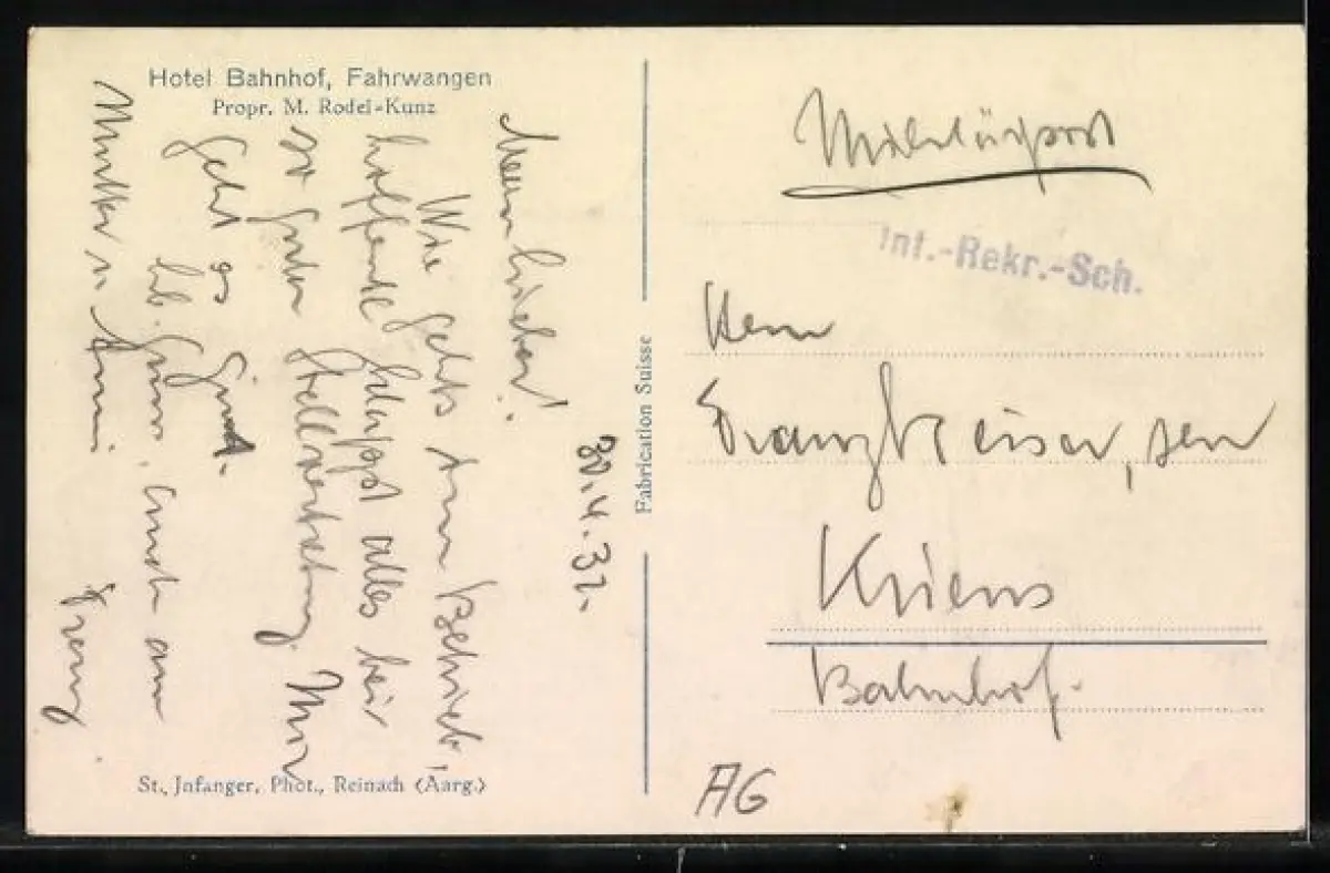 AK Fahrwangen, Hotel Bahnhof, Propr. M. Rodel-Kunz