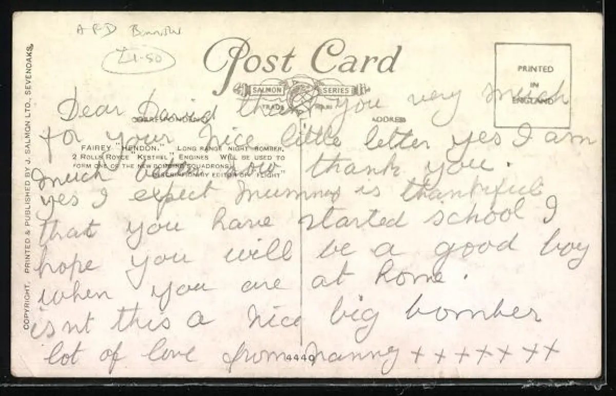 AK Fairey Hendon, Long Range Night Bomber, Flugzeug über den Wolken