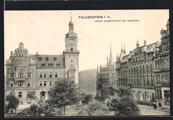 AK Falkenstein i. V., König-Albertplatz mit Rathaus