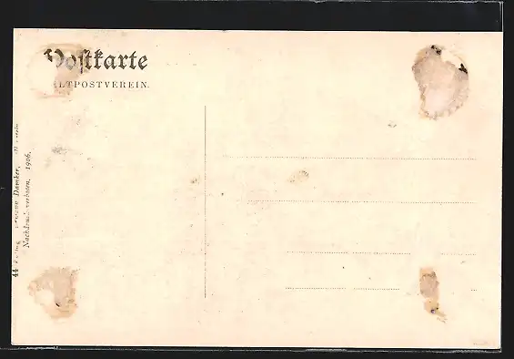 alte Ansichtskarte, ungelaufen, rückseitig Klebe- und Papierreste, rückseitig Oberflächenschaden, guter Zustand