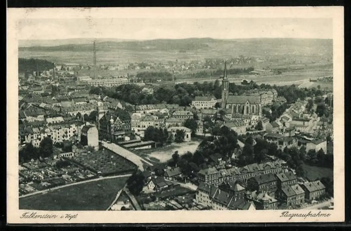 AK Falkenstein i. Vogtl., Ortsansicht vom Flugzeug aus