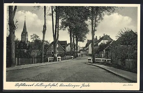 AK Fallingbostel /Lüneburger Heide, Strassenpartie mit Blick auf die Kirche
